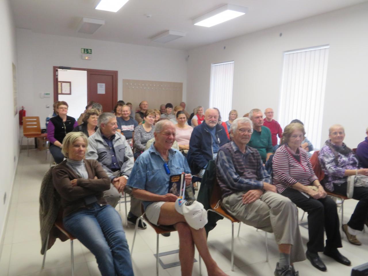 Fotografie z přednášky spisovatele Arnošta Vašíčka.
